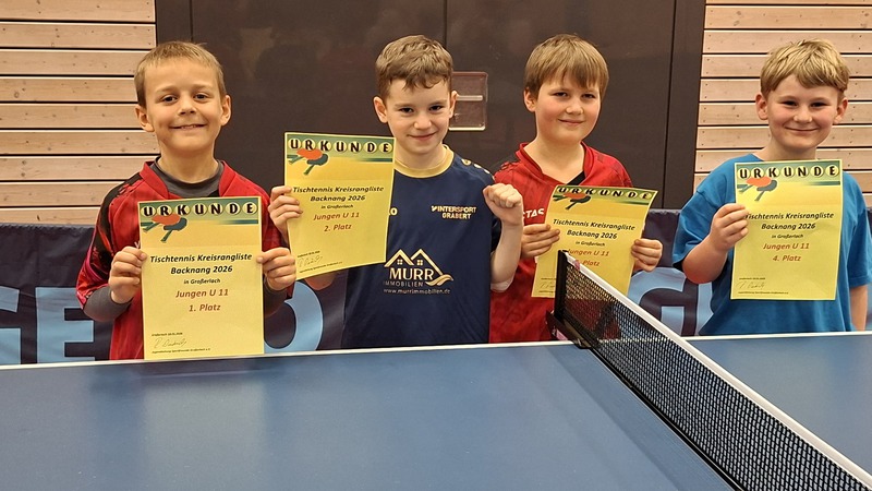 Bereits zum 5. Male richteten die Sportfreunde Großerlach e.V. die Tischtennis - Jungen – Kreisrangliste Backnang aus. Diesmal fand die Veranstaltung am Sonntag, den 18. Januar 2026 statt. Mit 37 Teilnehmern war es eine sehr gut besuchte Kreisrangliste. Um 10:30 Uhr starteten die jüngsten Altersklassen, die U 11, U 12 und U 13. Nach den Kids waren dann um 13:30 Uhr die Jungs der U 14 und U 15 Spieler am Start. Den Abschluss machte dann wie immer die Altersklasse der U 19. Nicht nur die technischen Anforderungen an das Tischtennisspiel der Jungs waren an diesem Turnier gefragt, sondern auch eine sehr gute Kondition. Denn in allen Altersklassen wurde das Spielsystem „Jeder gegen Jeden“ gespielt. Insgesamt fanden an diesem Tag somit 105 Tischtennisspiele statt, bis die jeweiligen Sieger der Altersklassen feststanden.
